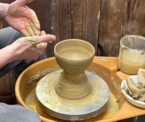 It was my first time ever using a potter’s wheel so I was quite nervous, but as soon as I began working the clay my worries instantly vanished. It was really satisfying to see this bowl beginning to form from the ball of clay that started there.